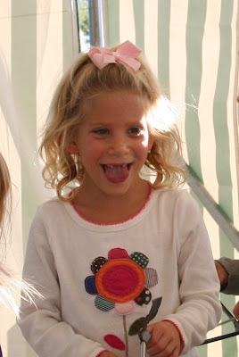 Taylor FINALLY lost one of her 2 front teeth on top, after a week of watching it dangle. Tonight we were eating at a restaurant and all of a sudden, she slapped her tooth on the table and said, "There it is!" Tonight at bedtime as we tucked her in and put her tooth under her pillow she asked, "is the Tooth Fairy strong enough to bring me a real live puppy for my surprise?" I told her a puppy would be really hard to fit under her pillow and we wouldn't want to squish the puppy. Whew, dodged that one, for a little while anyway.